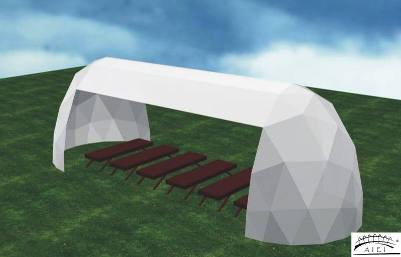 Un domo geodésico surge como la sección media de una esfera geodésica. Su forma puede estar basada en la figura de un tetraedro, un octaedro o un icosaedro.